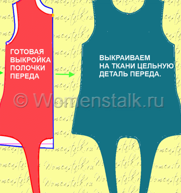 We take a pattern – we remove a copy from it. And on this copy we spend the following manipulations – we change the neckline and the armhole line.
